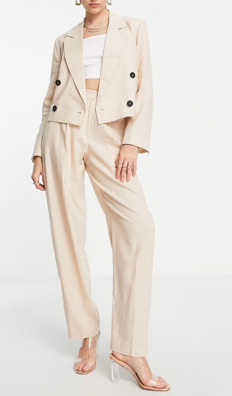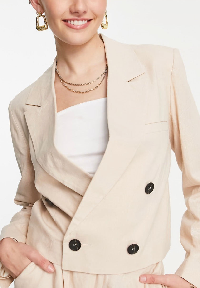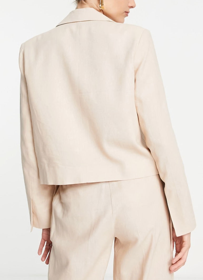 Topshop Tailored co-ord double breasted linen-blend blazer in stone