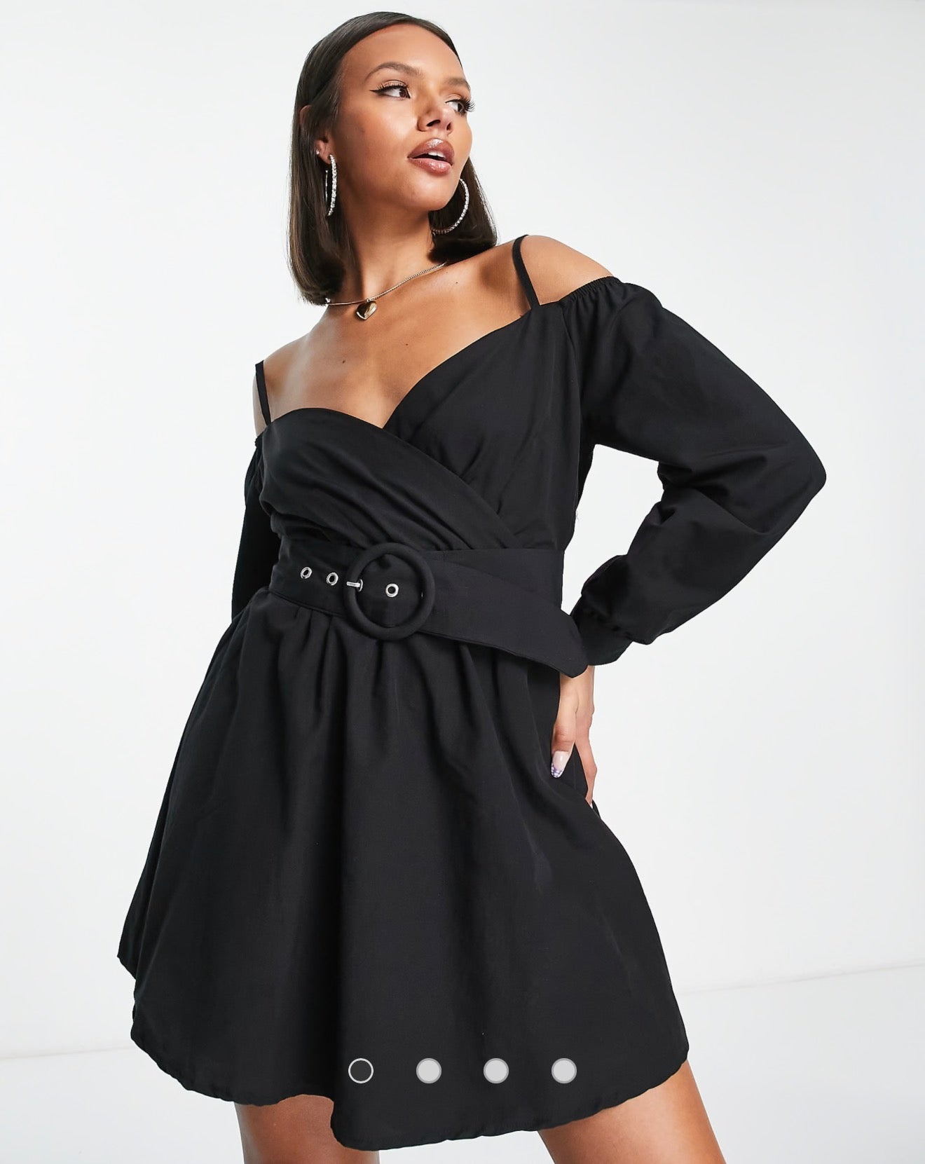 Trendyol belted off shoulder mini dress in black