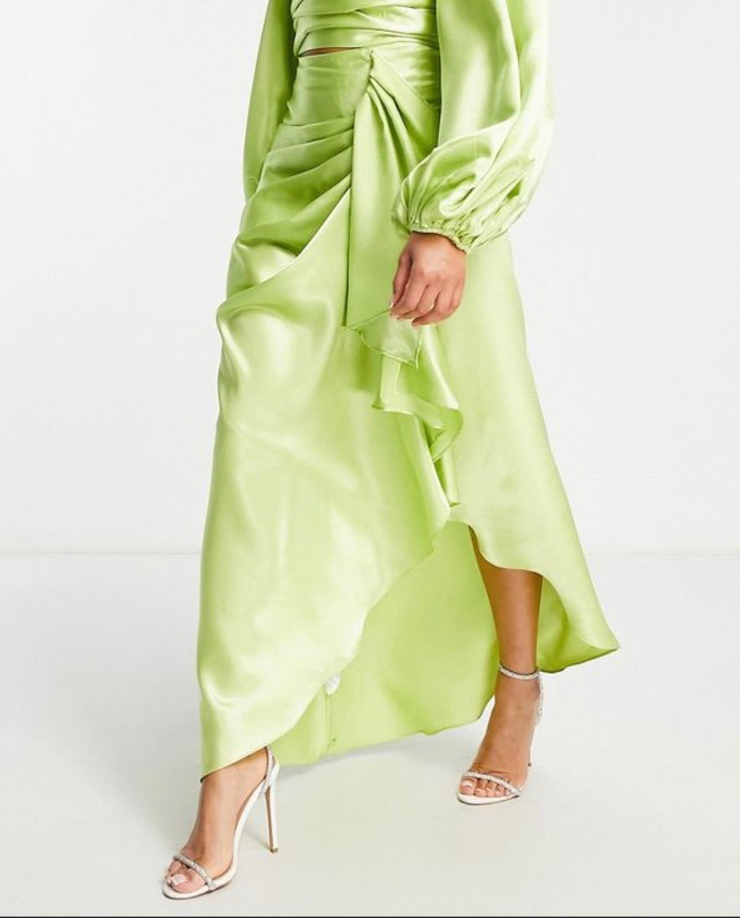 VL The Label frill satin maxi skirt in green co-ord