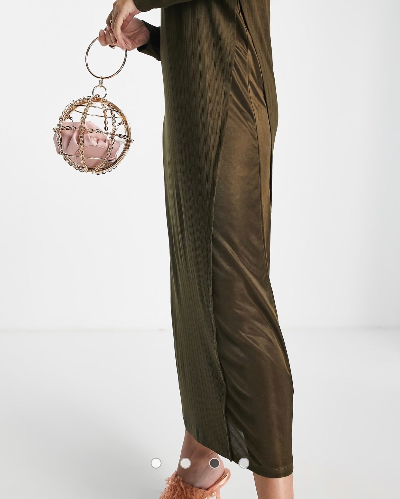 ASOS DESIGN – Khakifärgad ribbad midiklänning med lång ärm och satininlägg