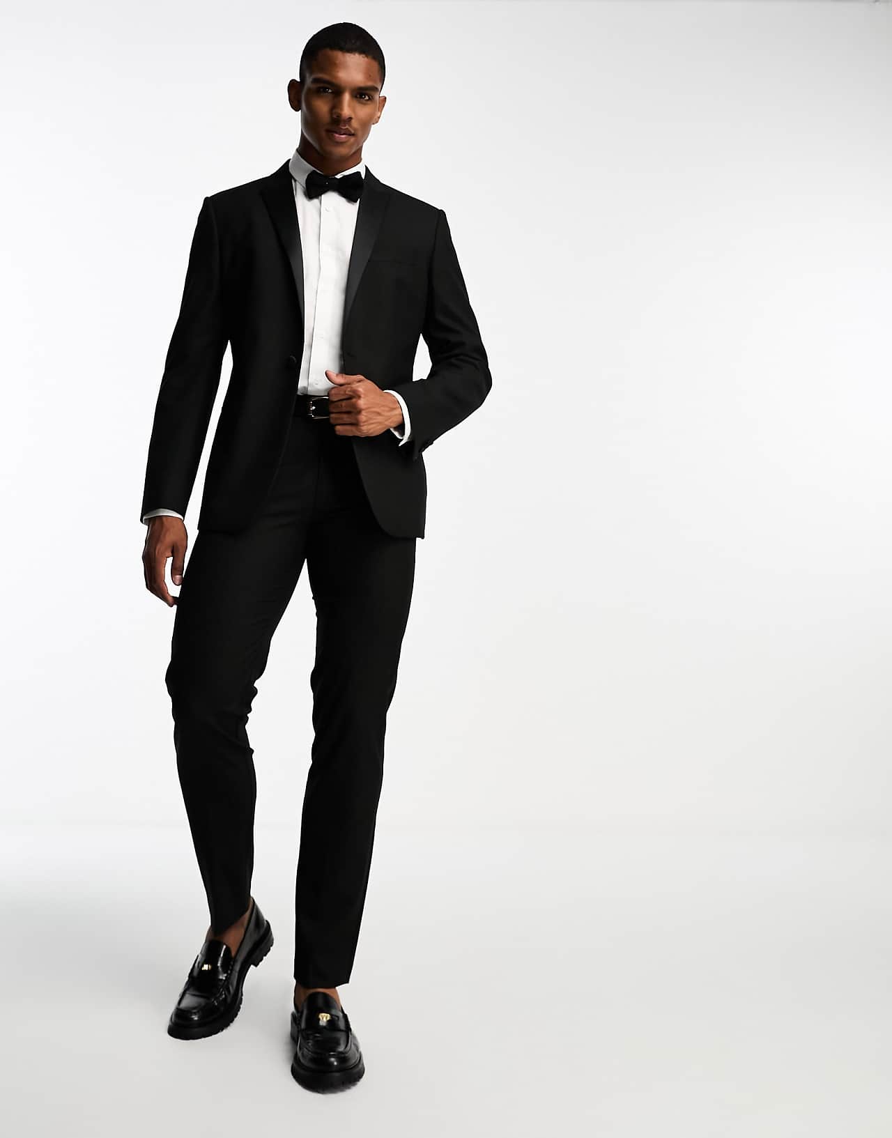 asos design slim tuxedo suit jacket in black